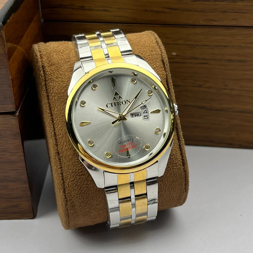 Introducing the Water Resistant, Scratch Resistant Citron Watch with China Movement and Ion Plating, featuring a High-Quality Dial